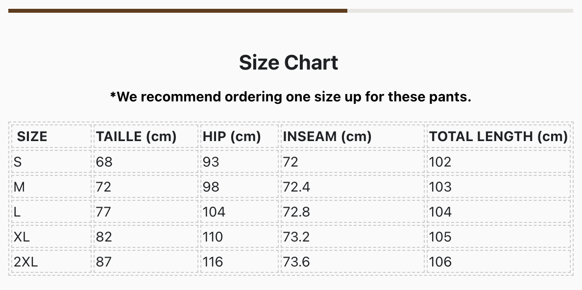 *We recommend ordering one size up for these pants.